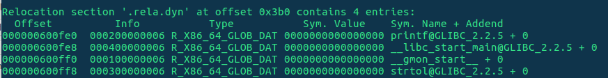 Como podemos ver, gracias a -z relro las relocations se han vuelto de solo lectura cuando el programa tiene el control, y con -z now le pedimos al linker que resuelva todos los símbolos dinámicos antes de pasar el control al programa, y así no podemos sobreescribir la GOT.